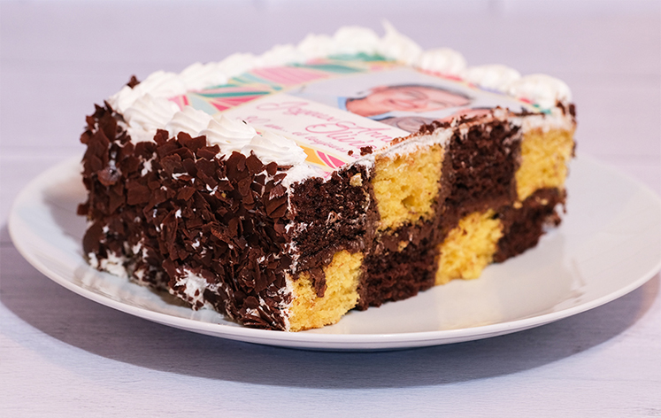 - 2 layers de Cake nature ou choco (ou 10chf/kg en supplément pour l'effet damier nature/choco)