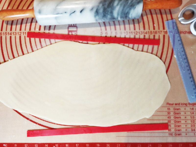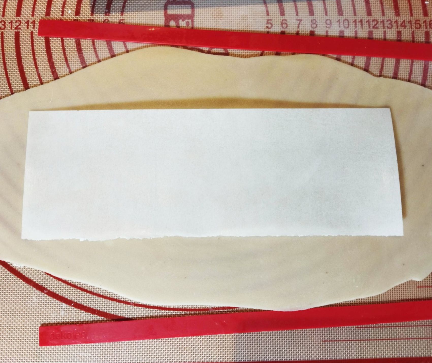 2/ Découpez la feuille azyme en deux dans le sens de la longueur.